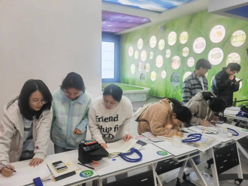 沉浸式参观农牧文化馆,近距离触摸贵州农牧发展脉络。活动中,学子们以笔为媒,将贵州特色农牧元素与农耕精神融入Logo创作中。