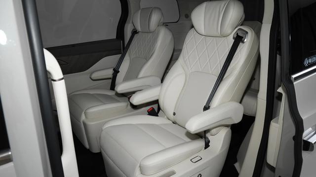 高山7内饰同样没有变化,延续了家族式设计风格,全液晶仪表的尺寸为12.3英寸,中控屏幕的尺寸为15.6英寸,副驾驶屏幕同样为15.6英寸,座椅采用Nappa真皮材质,车机芯片为高通骁龙8295,车载冰箱也是标配,座椅采用2+2+3。
